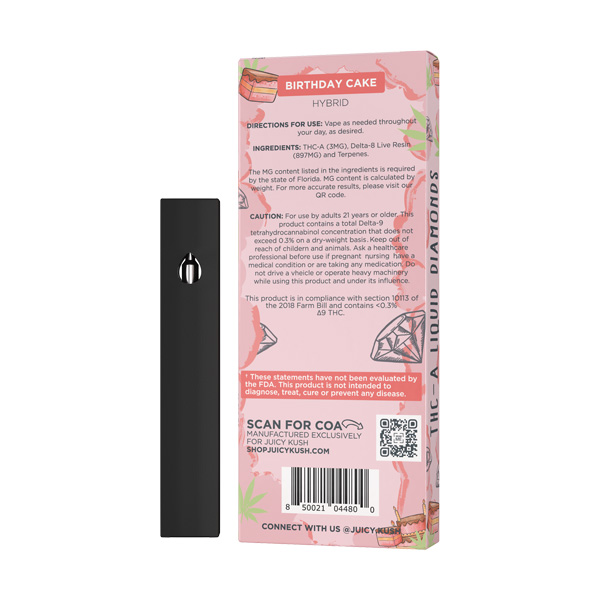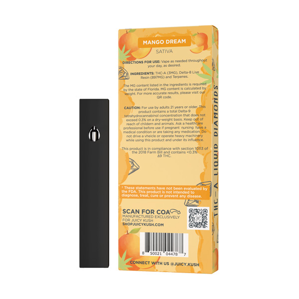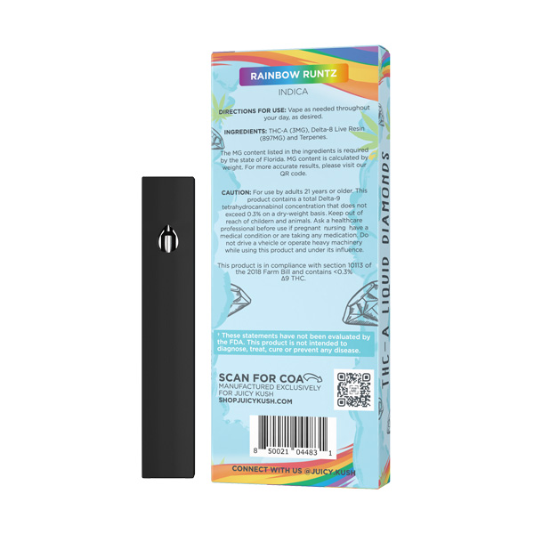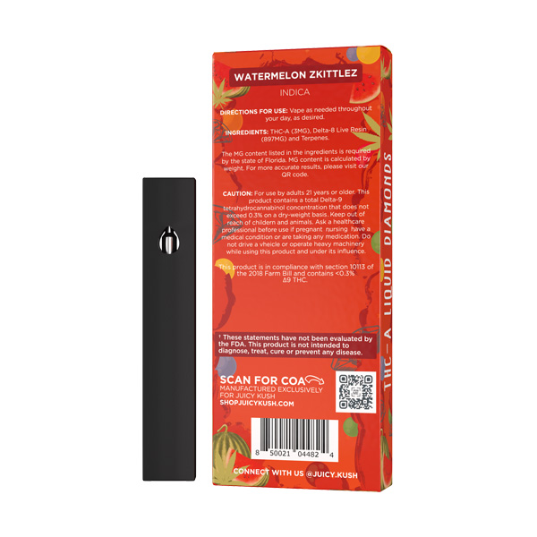 No need to fuss with rolling or grinding – these disposables are ready to use straight out of the box. Whether you’re a seasoned pro or new to the scene, the convenience of Juicy Kush disposables fits right into your lifestyle. Elevate your vibes with the Juicy Kush Lil’ Diamond Series THC-A/D8 Disposable. Grab yours today and experience the ultimate fusion of flavor and relaxation. Your next adventure is just a puff away!