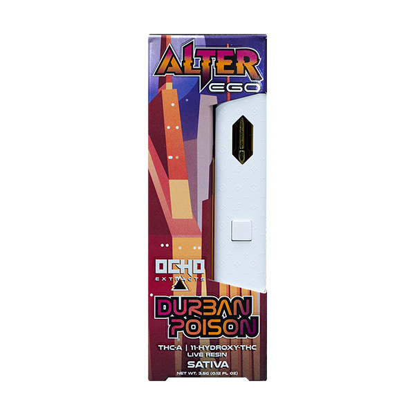 Introducing the Ocho Extracts Alter Ego Disposable – the ultimate companion for any hemp derived enthusiasts! Pack with a powerful blend of D8, THC-A, and 11-HYDROXY-THC Live Resin, this disposable vape pen delivers an unforgettable experience. Unleash your alter ego with the Ocho Extracts Alter Ego Disposable and experience the perfect blend of cannabinoids and flavors. Elevate your vaping game and enjoy!