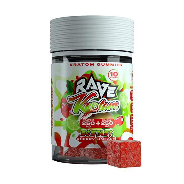 Unlock a world of euphoria with Rave Ecstasy Gummies. Infused with a potent blend of kratom and kanna, these vegan gummies offer a delightful way to uplift your spirits and enhance your mood. Each jar contains 10 vegan gummies infused with 25mg of Kratom and Kanna per gummy, providing a burst of euphoria that elevates your mood and brightens your day.